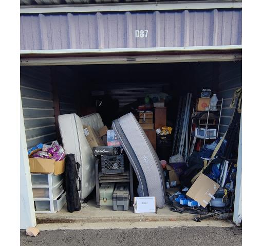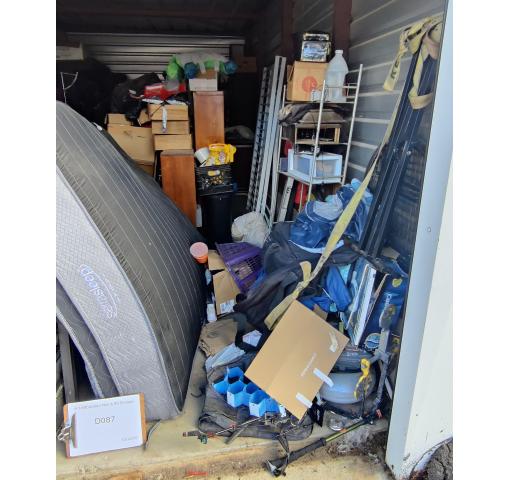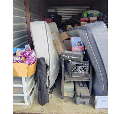 This 10 x 20 unit contains organizers, tackle box, tool box, mattresses and many boxes of misc.