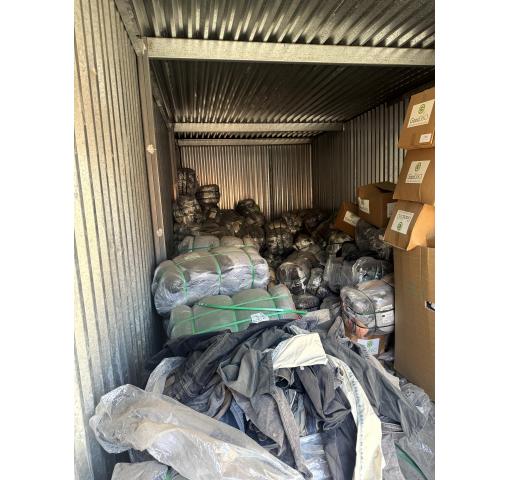 This is a 10 x 25 unit that appears to contain a lot of clothes in bags and boxes. Check out all the pictures.