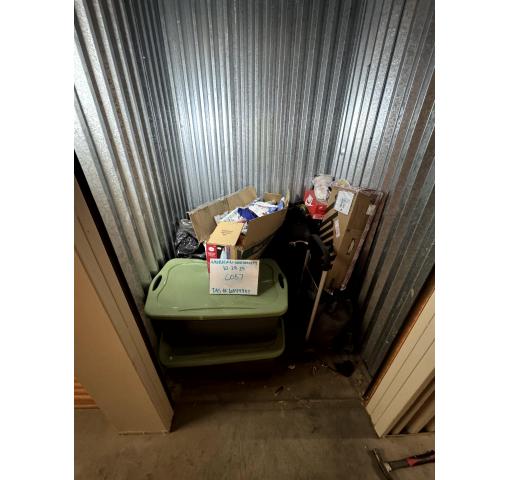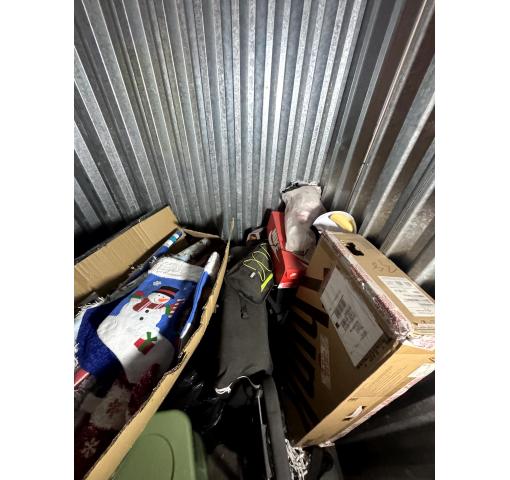 This is a 5 x 5 unit that appears to contain totes, Christmas stuff and misc.