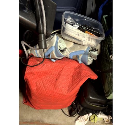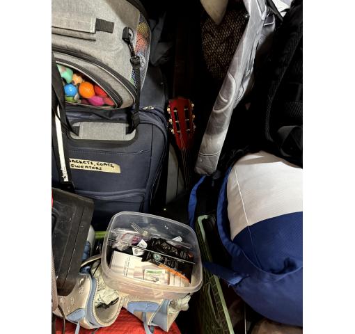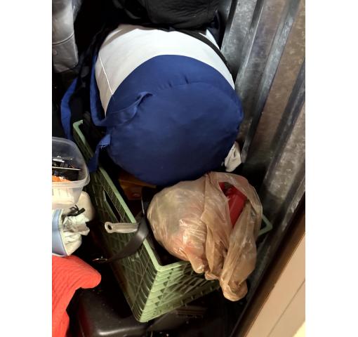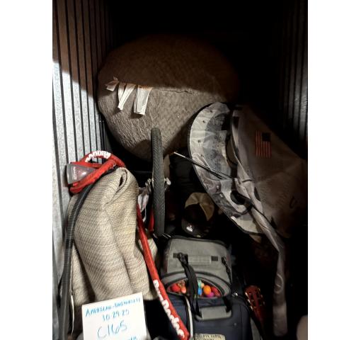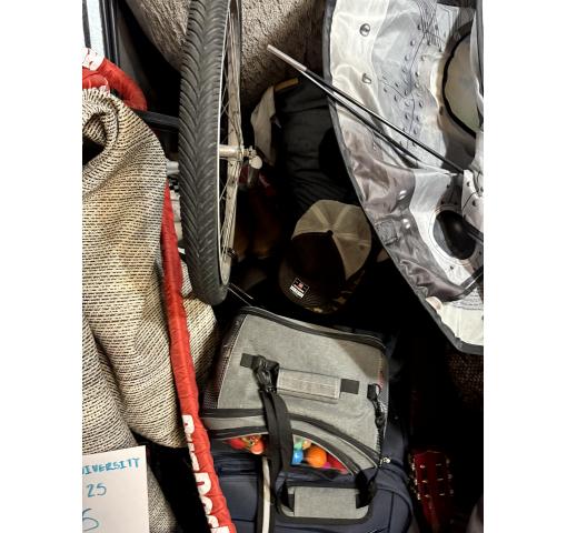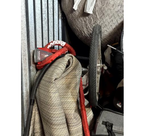 This is a 5 x 15 unit that appears to contain a child carrier for bicycle, luggage, change jar, and misc.