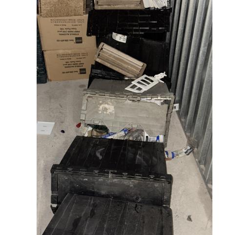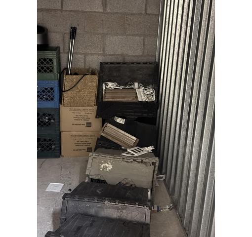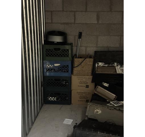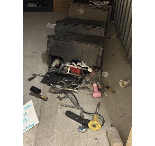 This is a 5 x 10 unit that appears to contain tools, milkwires, totes and boxes of misc.