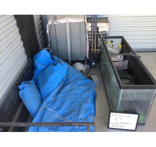 You are bidding on a 10x10 unit that contains an aquarium, dishwasher, mini-fridge, tarps and metal.
