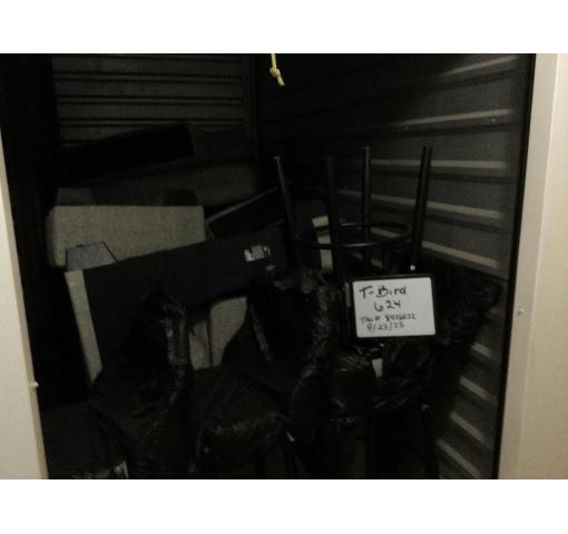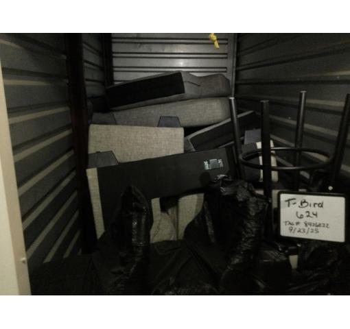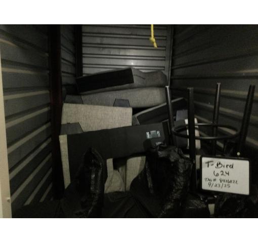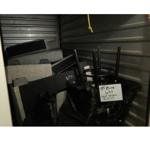 This unit is a 5 x 10 and contains furniture, chairs and misc.